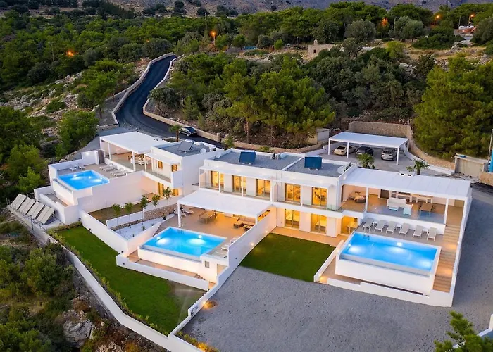 Villa Mimosa In Pefkos obsahuje plavecký bazén, nabízí ubytování vedle Saint John. Vila má 4 ložnic a 4 koupelen. Toto ubytování nabízí vnitřní dvorek pro relaxaci.